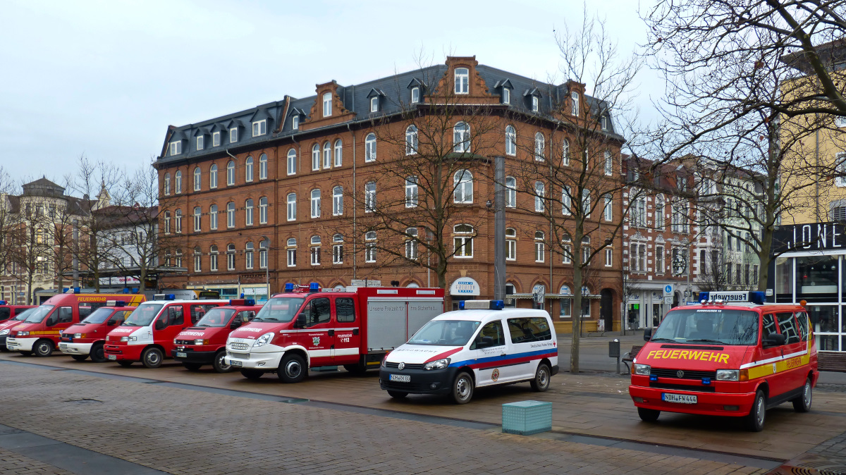 Zur Friedenslicht-Anzündung kam am 20.12.2015 auf dem Bahnhofsvorplatz von Nordhausen zum Zusammentreffen von Feuerwehrfahrzeugen des ganzen Landkreises