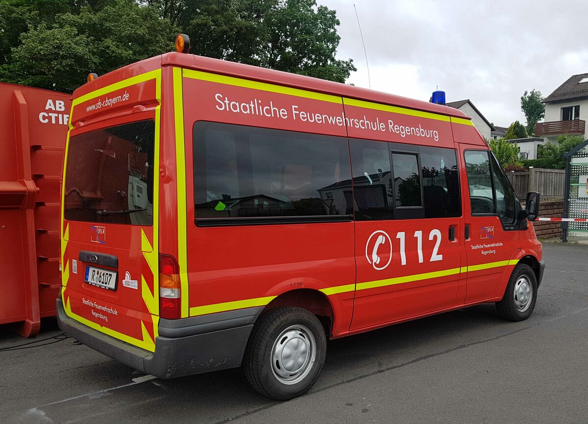 =Ford Transit der Staatlichen Feuerwehrschule Regensburg steht anl. vom Internationalen Jugendfeuerwehr-Wettbewerb 2022 in 36100 Petersberg, Mai 2022
