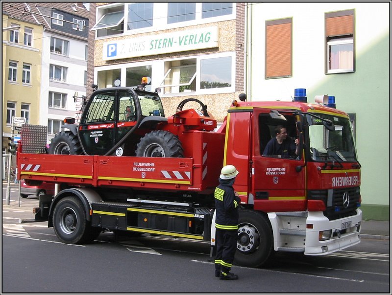 Am 20.06.2007 brannte in Düsseldorf der Dachstuhl der Kirche St. Peter. Als ich nach der Arbeit auf dem Weg nach Hause dort vorbeikam, waren die Löscharbeiten zwar vorüber, aber in den Straßen ringsrum standen noch zahlreiche Fahrzeuge der Feuerwehren aus Düsseldorf.
