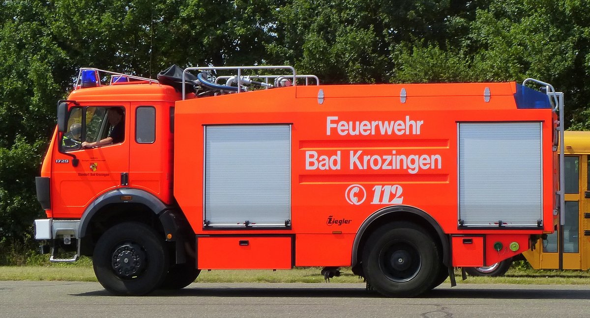 Feuerwehr Rodenbach Mercedes Benz Unimog U5023 TLF3000 (Florian Rodenbach 1-25-1) bei einer Jugendfeuerwehr Großübung am 25.10.25 in Erlensee an der Georg Büchner Schule Daniel Oster