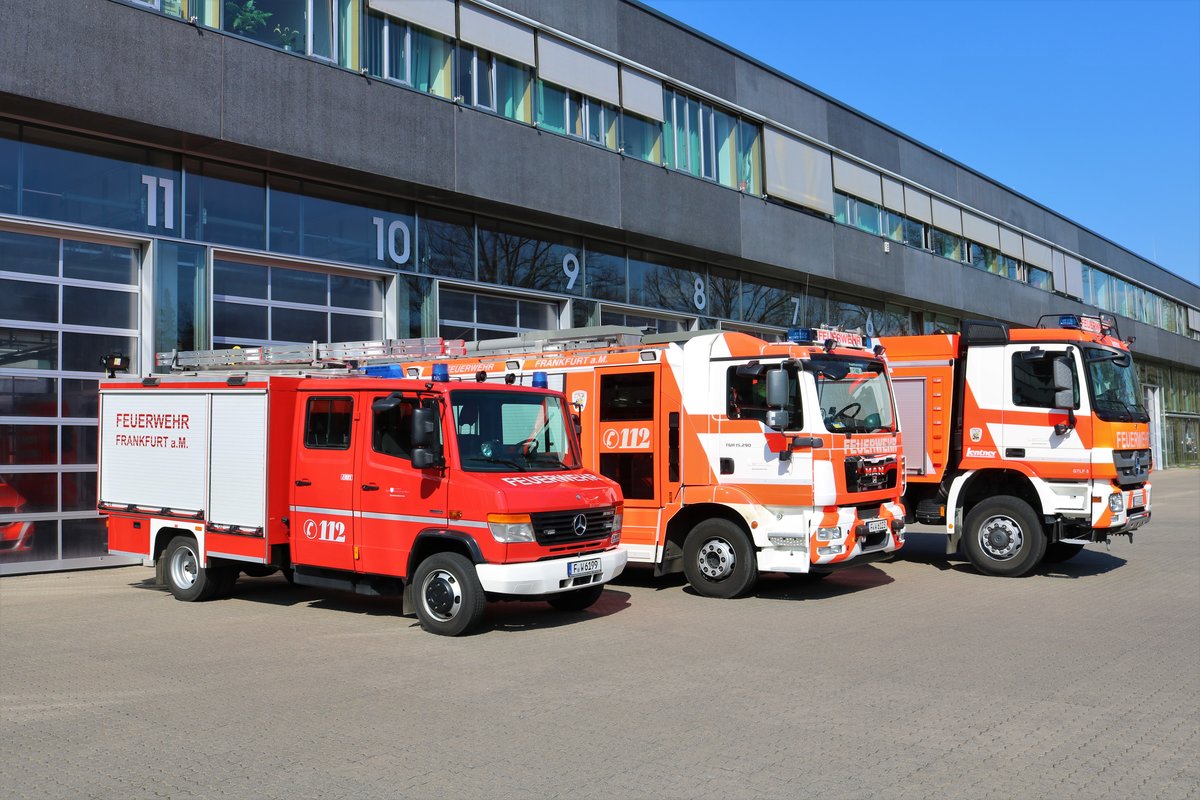 Feuerwehr Frankfurt am Main Mercedes Benz Vito LF, MAN TGM HLF20 (Florian Frankfurt 1/46-1) und Mercedes Benz Actros GTLF5 (Florian Frankfurt 1/25-1) am 30.03.19 vor der Hauptfeuerwache BLW1 in Eckenheim