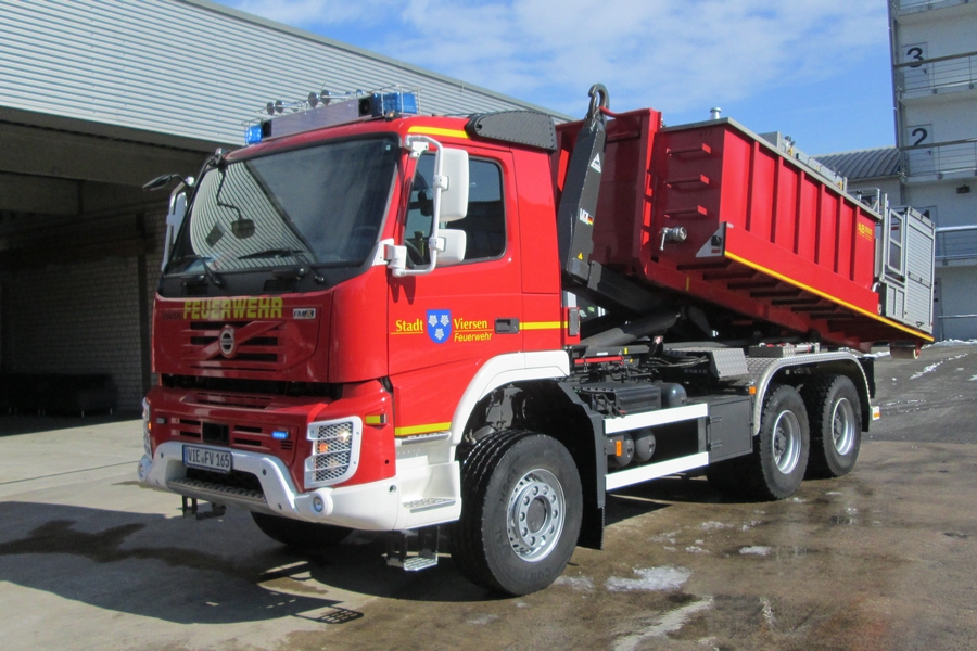 Wechselladerfahrzeug (WLF) der Freiwilligen Feuerwehr Viersen, stationiert an der Hauptwache. Der Abrollbehälter (AB-Wasser/Schaum) ist standardmäßig aufgesattelt. Technische Details: Fahrzeug: Funkrufname: Florian Viersen 08/65/12 Fahrgestell Volvo FMX Aufbau: Michels Feuerwehr Technik, Baumeister&Trabant Baujahr: 2012 Abrollbehälter: Firma: Laudon - 9000 l Löschmittel - 500 l Schaummittel - Tragkraftspritze TS 8/8 - 2x Schnellangriffseinrichtung 50 m mit einer Wurfweite von ca. 65 m - 2x fest eingebaute Zumischer Z4R - Monitorschaumrohr Der WLF ist in Viersen am 13.3.13 Zwecks Fototermin von mir Fotografiert worden