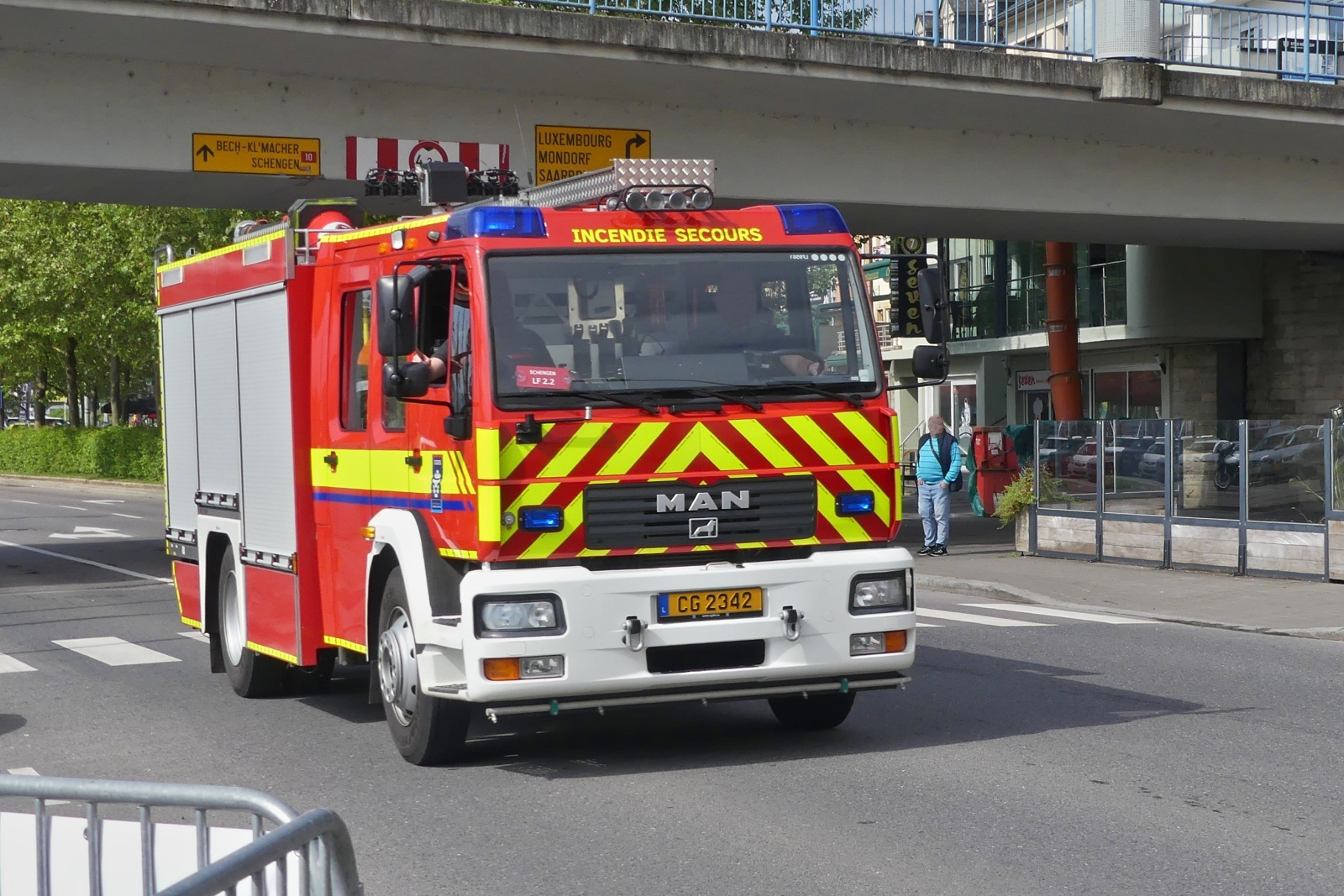 MAN Löschgruppenfahrzeug (LF 2.2), der Wehr aus Schengen, unterwegs durch Remich zu einem Einsatz.