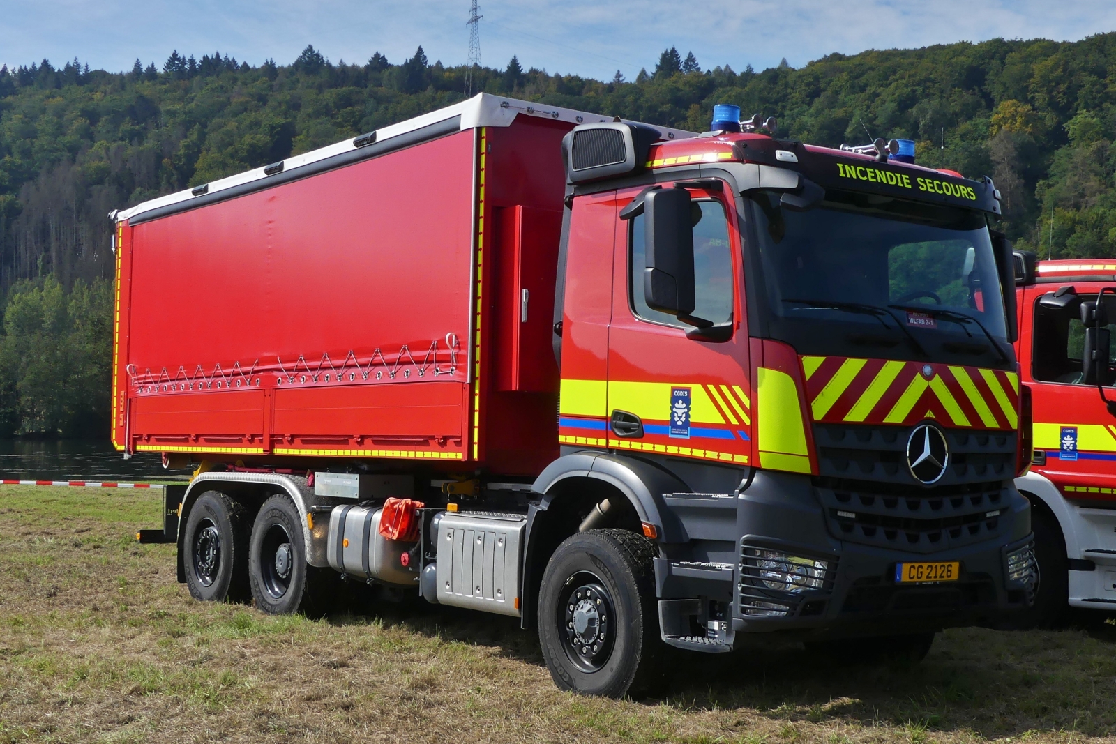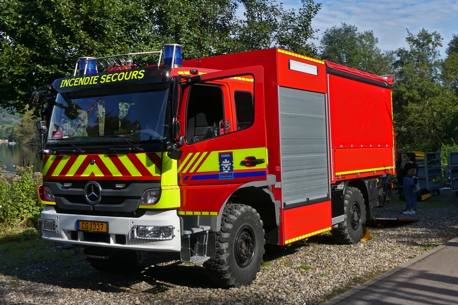 Mercedes Benz Feuerwehrfahrzeug des CGDIS, der Wehr aus Dudelange, nahm an der Militärparade in der Stadt Luxemburg Teil.