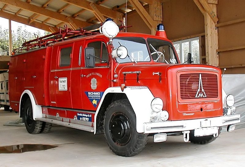 MAN 12.222 HLF. Dieses Hilfslöschfahrzeug wurde 1995 von der Firma Rosenbauer aus Leonding/Oberösterreich aufgebaut und an die Berufsfeuerwehr München ausgeliefert. Dort wurde das Fahrzeug 2011 ausgemustert und an eine FF im Landkreis München weiter gegeben. Das Fahrzeug ist mit einem Löschwassertank mit 1200 Litern Fassungsvermögen, sowie einem Schaummitteltank von 200 Litern Fassungsvermögen ausgestattet. Des weiteren ist ein Stromaggregat, ein hydraulischer Rettungssatz, ein Lichtmast, ein Überdrucklüfter, eine Motorsäge, diverse Tauchpumpen und ein Hebekissen an Bord dieses Fahrzeuges. Der Dieselmotor hat einen Hubraum von 6871 cm³ und leistet 230 PS. Treffen für Feuerwehr-Oldtimer am 14.09.2024 an der  Alten Dreherei  in Mülheim an der Ruhr.