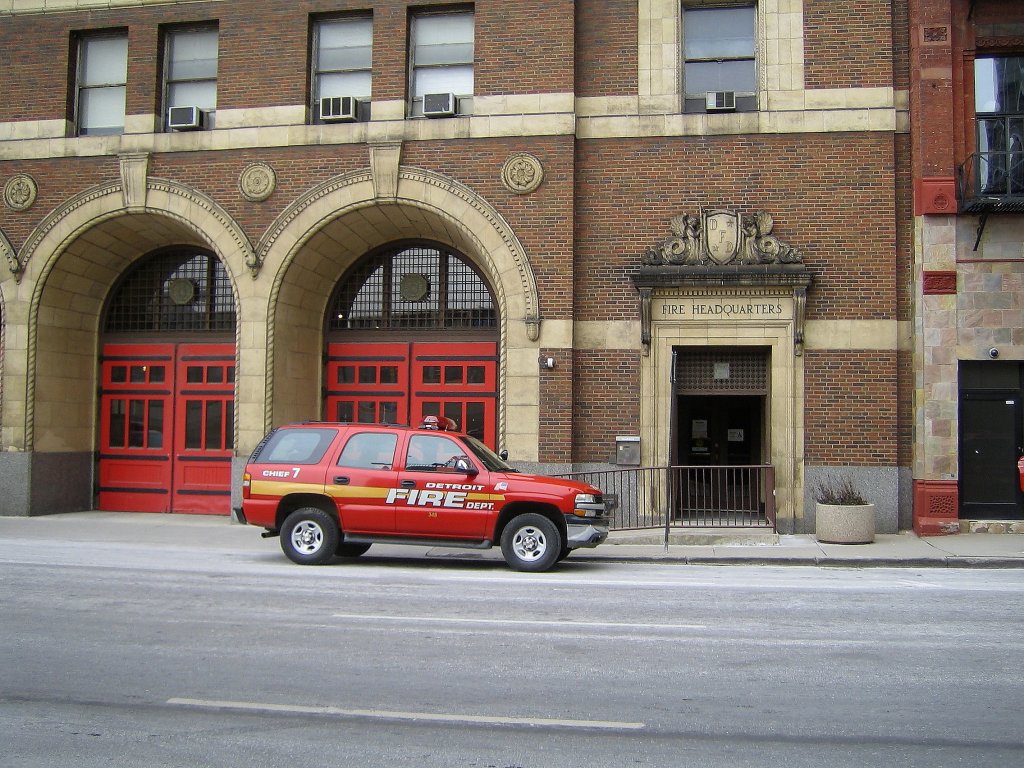 Chevy Tahoe der Detroiter Feuerwehr vor dem Hauptquartier Oktober 2011.