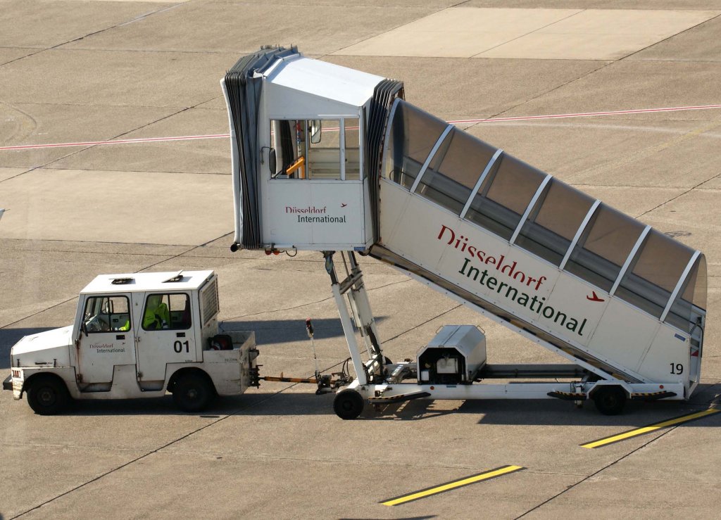 Schlepper "01" mit Fluggasttreppe "19", EDDL-DUS, Düsseldorf, 26.09.2008, Germany