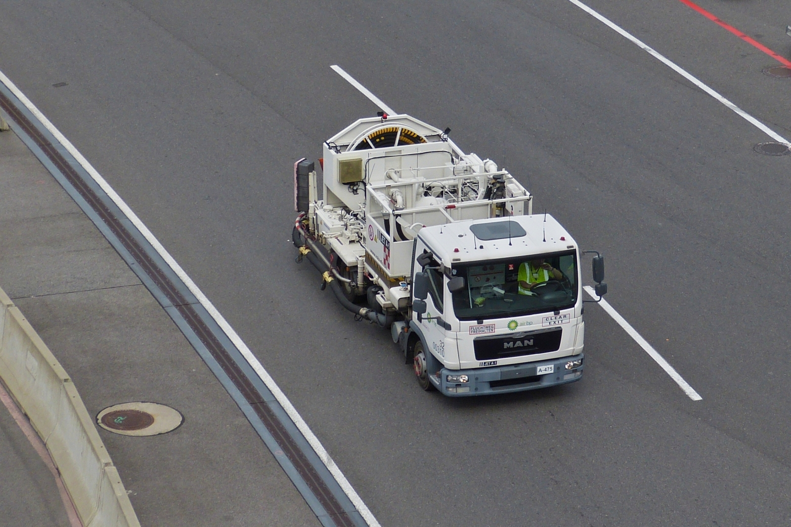MAN Schlauchwagen, zum Betanken von Flugzeugen, gesehen auf dem Flughafen von Wien. 06.2023