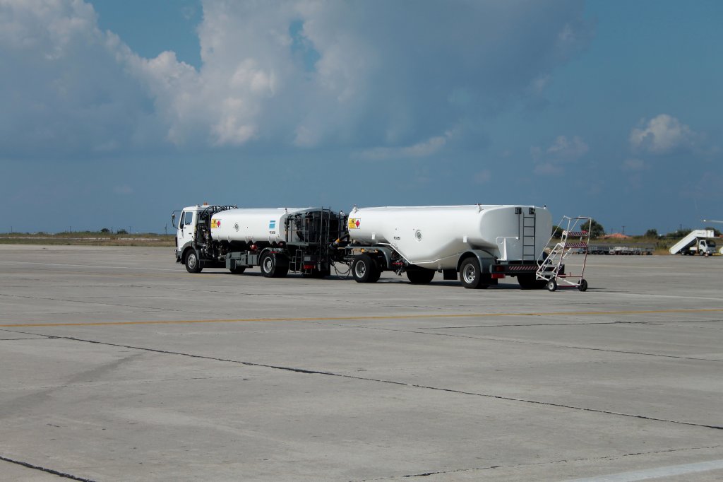 Auf dem Vorfeld des Flughafen auf Rhodos konnte ich am 08.10.2011 dieses Mercedes 1919 Tankfahrzeug mit Anhänger fotografieren.