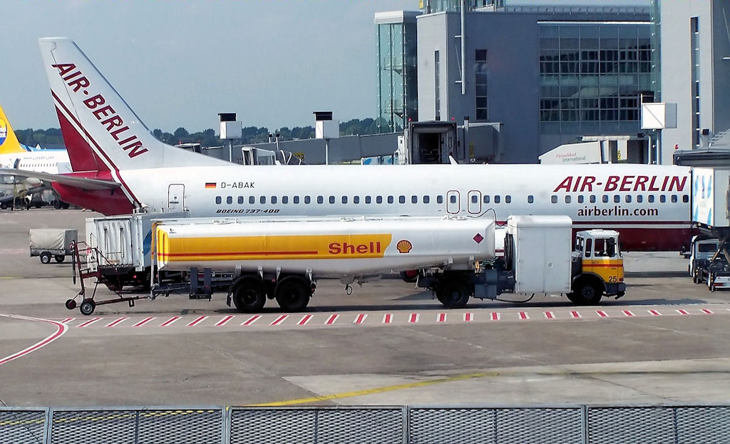 Shell Flugfeldtankwagen bei einer Air Berlin Boeing 737 in Düsseldorf - 08.04.2005
