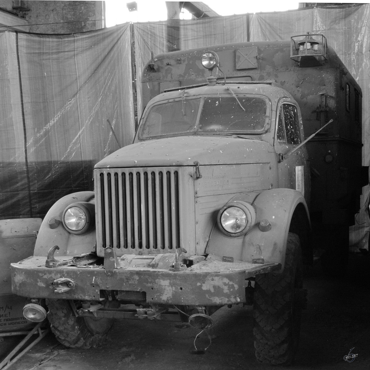 Ein GaZ-51 Feuerwehrfahrzeug im Technikmuseum Vadim Zadorozhny (Moskau, Mai 2016)