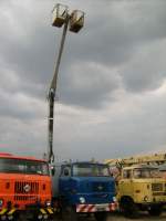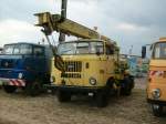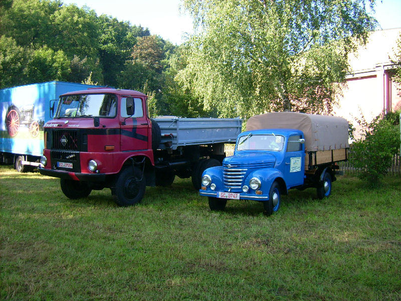 IFA W50LA/K und Framo V901/2 auf der Wiese neben der Mehrzweckhalle in Burkhardtsdorf