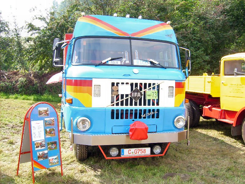 Schaustellerfahrzeug IFA W50L beim 10. Bulldotreffen in Burkhardtsdorf auf der Wiese hinter der Topfmarktscheune.