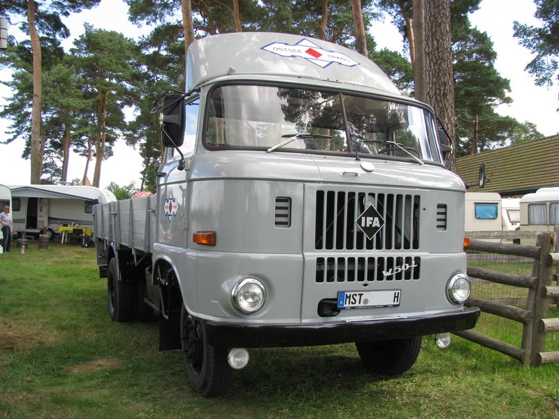 Pritschenwagen W 50 L des ehem. Kraftverkehrs des Ostsee-Bezirks Rostock "OstseeTrans" aus dem alten Landkreis Mecklenburg-Strelitz (MST) beim 18. Oldtimer- und Traktoren-Treffen im AGRONEUM in Alt Schwerin [12.08.2012]