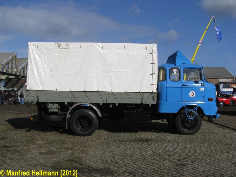Pritschenwagen mit Plane IFA W 50 des ehem. VEB KfL Wismar aus dem Landkreis Nordwestmecklenburg (NWM) gesehen beim 6. Oldtimertreffen im ex. KIW "Vorwärts" in Schwerin [07.10.2012]