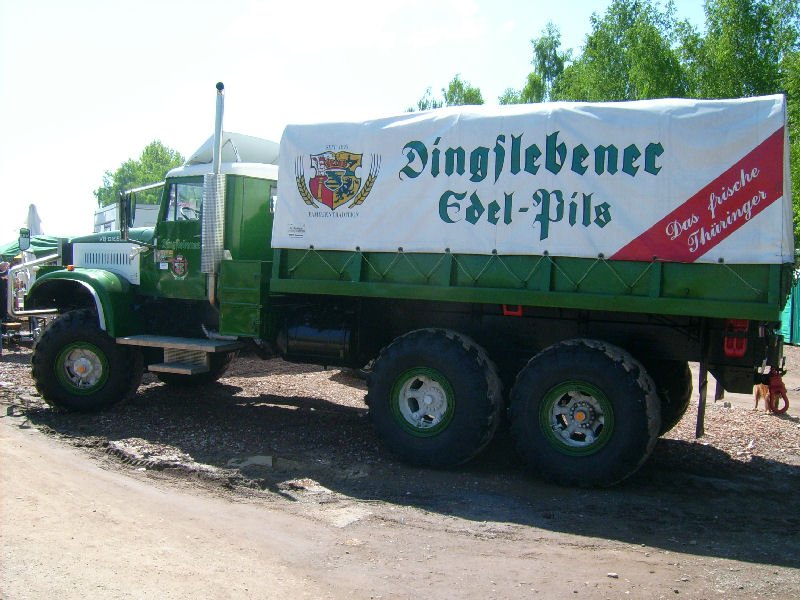 Kras 255 mit Werbung für eine Brauerei stand auf dem Gelände des Oldtimertreffens in Werdau