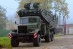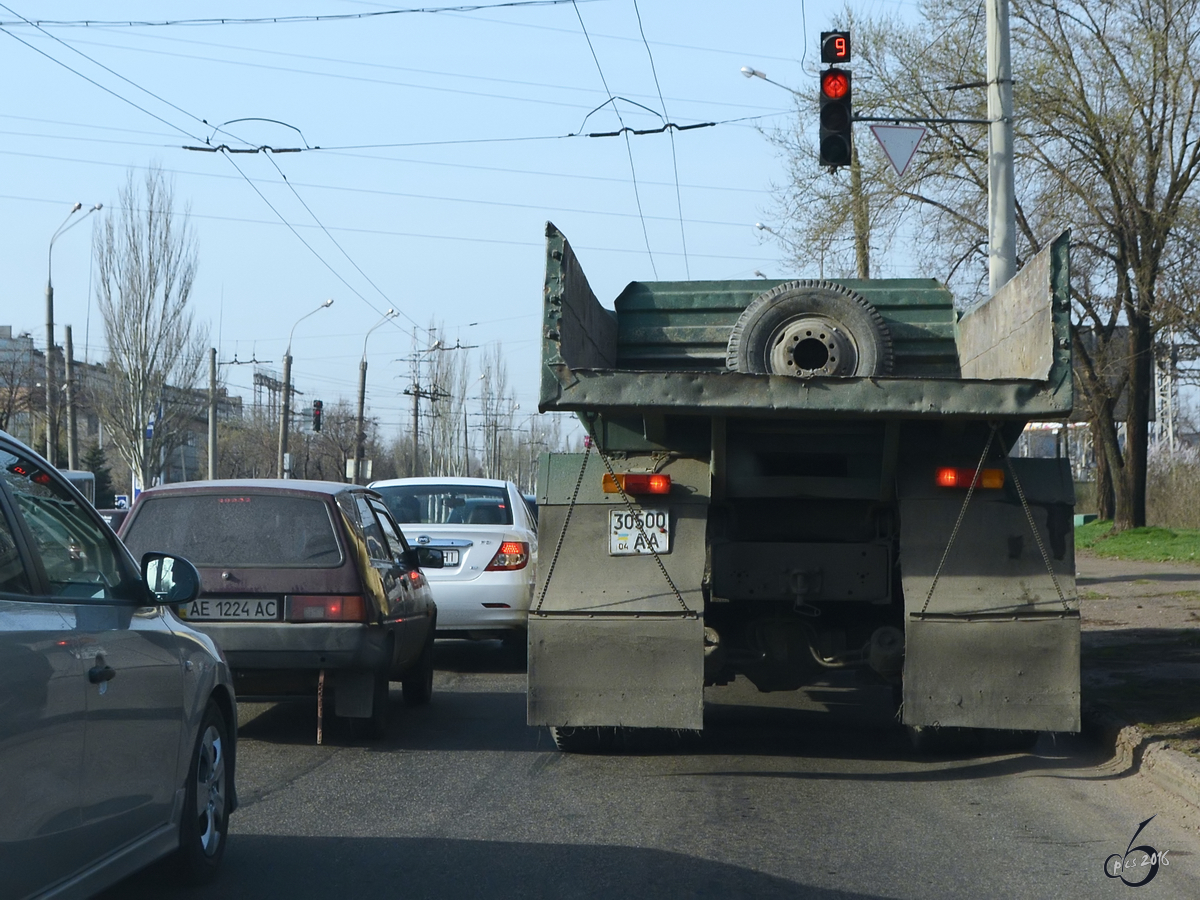 Eine Straßenszene aus der Ukraine. In neun Sekunden schaltet die Ampel wieder auf Grün und der KrAZ-Kipper vor mir setzt sich in Bewegung. (April 2016)