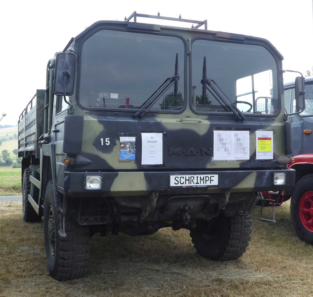 =MAN-Pritsche, ehem. Einsatzfahrzeug der BW, gesehen bei der Oldtimerausstellung in Uttrichshausen, 07-2019