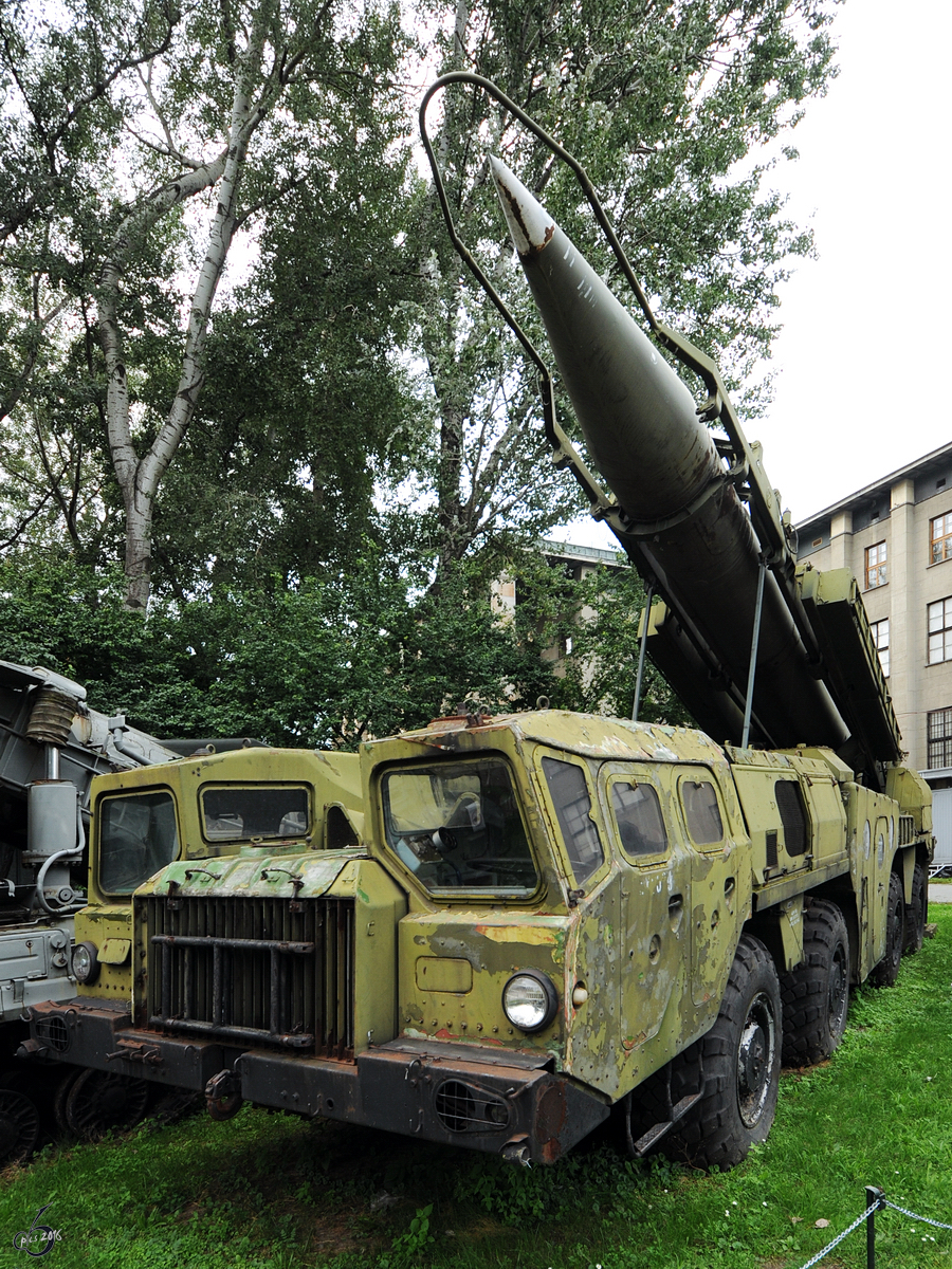 Eine auf einen LKW vom Typ MAZ-543 montierte mobile SS-1c Scud-B-Startplattform der Polnischen Armee (Warschau, August 2011)