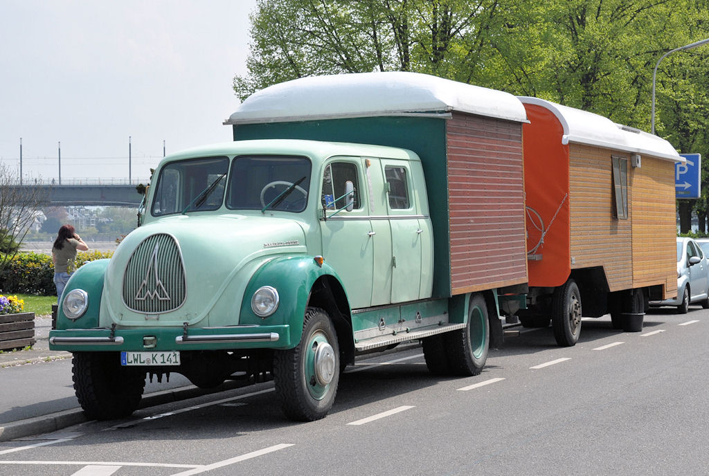 Magirus Deutz Oldtimer Lkw mit Mehrpersonenkabine und Kastenaufbau, sowie Hänger, Bonn 27.04.2010