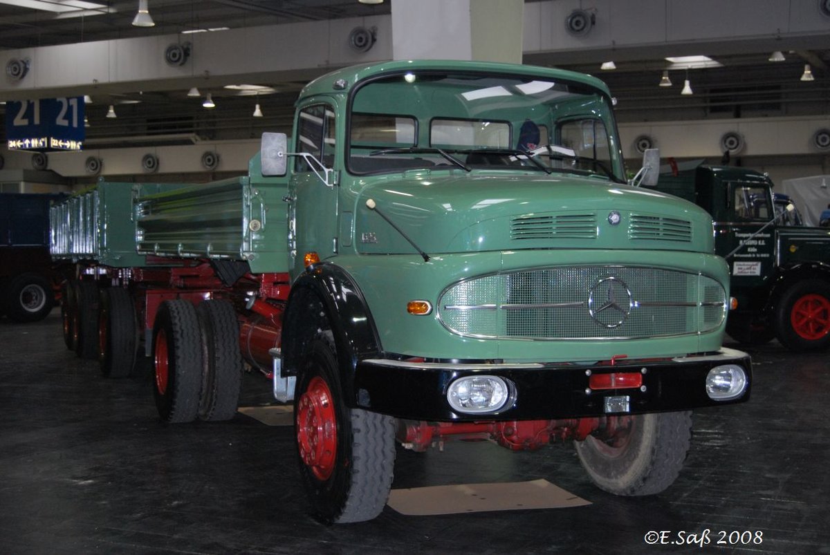Mercedes Benz LK321 aus dem Jahr 1958. Der Dreiseitenkipperaufbau stammt von der Firma Meiller. Unter der Motorhaube verrichtet der legendäre OM312-Motor (OM steht für Ölmotor) seinen Dienst. Dieser Sechszylinderreihendieselmotor hat einen Hubraum von 5068 cm³ und leistet 110 PS. Die Höchstgeschwindigkeit dieses Kipplastwagens ist mit 77 km/h angegeben. 16. Oldtimer-Festival an der "Alten Dreherei" in Mülheim an der Ruhr am 15.06.2024. Michael H.