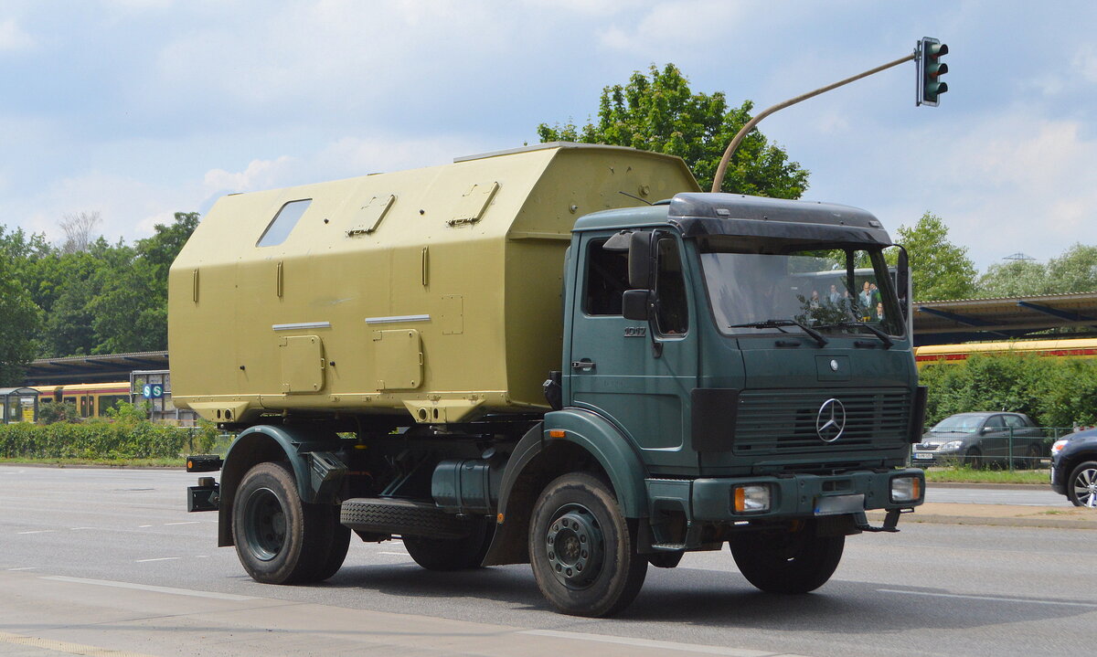 Ein betagter LKW, ein MB 1017 mit einem einem recht eigenartig aussehendem Kofferaufbau (wie er bei der NVA zum Beispiel als Entgiftungsstation im Einsatz war?), ich weiß es nicht genau, wenn jemand etwas weiß darf er gerne etwas dazu schreiben, gesichtet am 12.07.21 Berlin Marzahn.