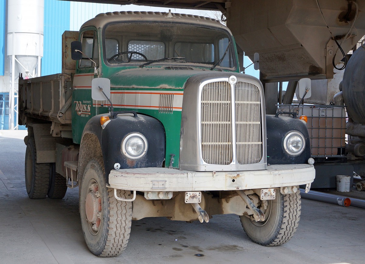 SAURER: Dieser Oldtimer hat dank dem internen Verkehr in einem Kieswerk im solothurnischen Bezirk Olten schon viele Jahre überlebt. Auch am 18.3.2015 steht dieser schöne Veteran noch im Einsatz.