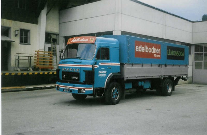 Dänzer, Adelboden BE 266'845 Saurer bei der Mineralquelle "Adelbodner" in Adelboden