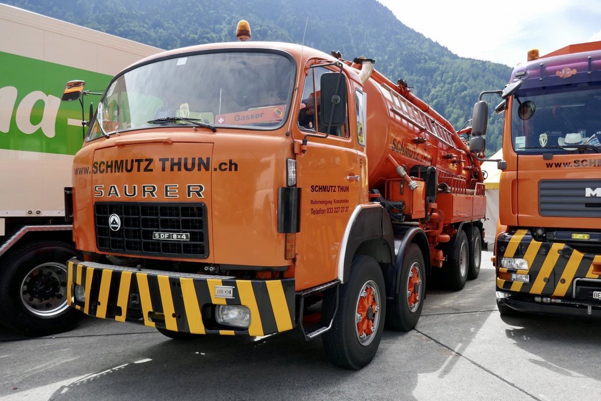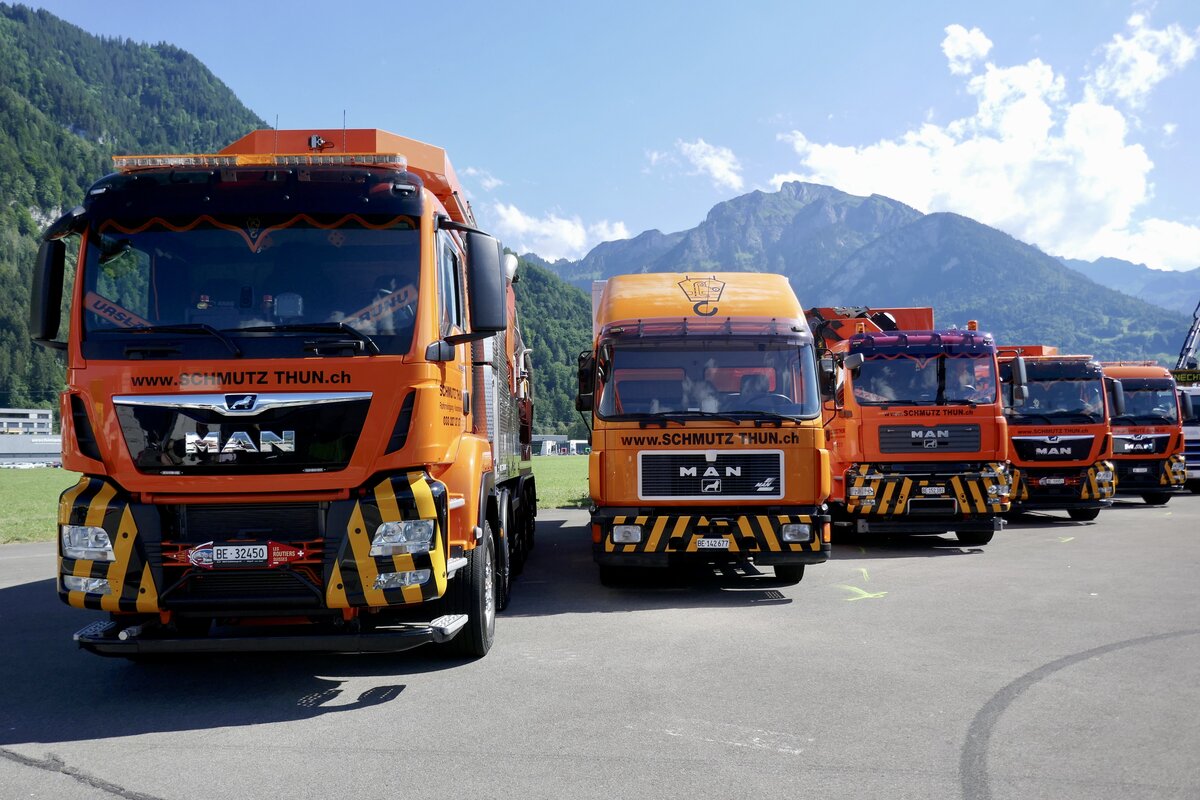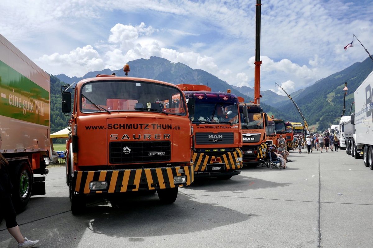 Saurer und mehrere MAN von Schmutz Thun am 25.6.18 beim Trucker Festival Interlaken.