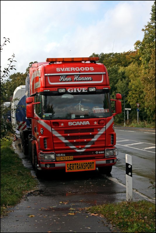 Am Abend wurde das Wetter etwas besser und die Transporter konnten auch ohne Regen aufgenommen werden. Im Bild der SCANIA 164G V8 580.