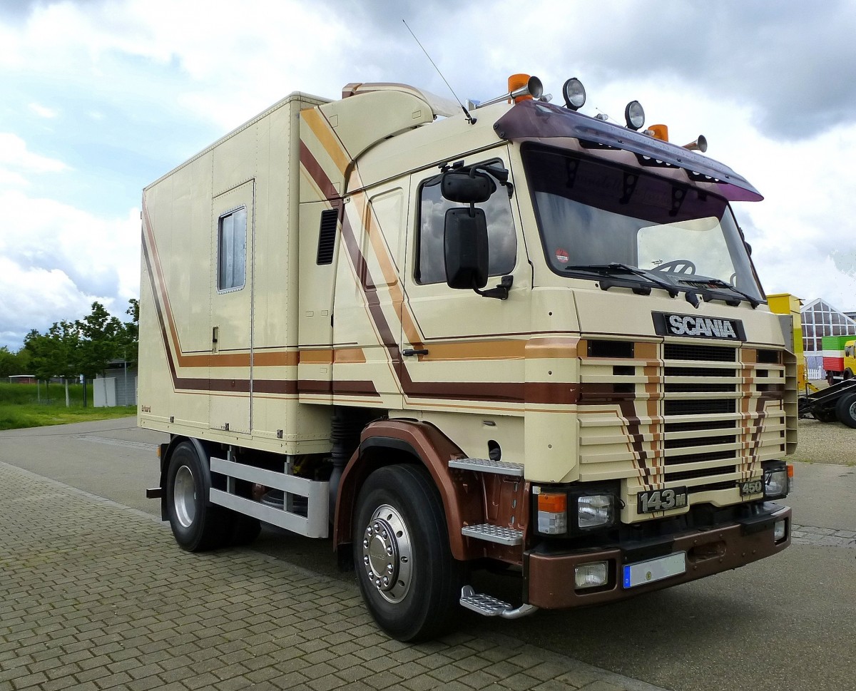 Scania 143M Zugmaschine mit 450PS, gesehen zur Freiburger Messe, Mai 2014