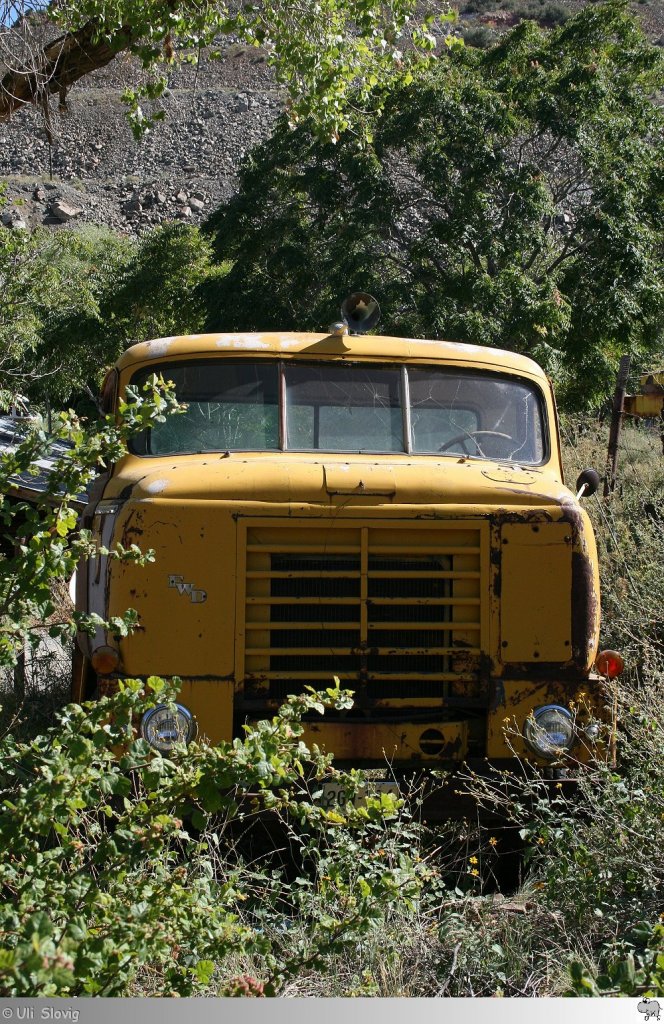 Old and Rusty: FWD Cab over Engine Truck zu finden bei der großen Fahrzeugsammlung der 'Gold King Mine' in Jerome, Arizona / USA. Aufgenommen am 23. September 2011.