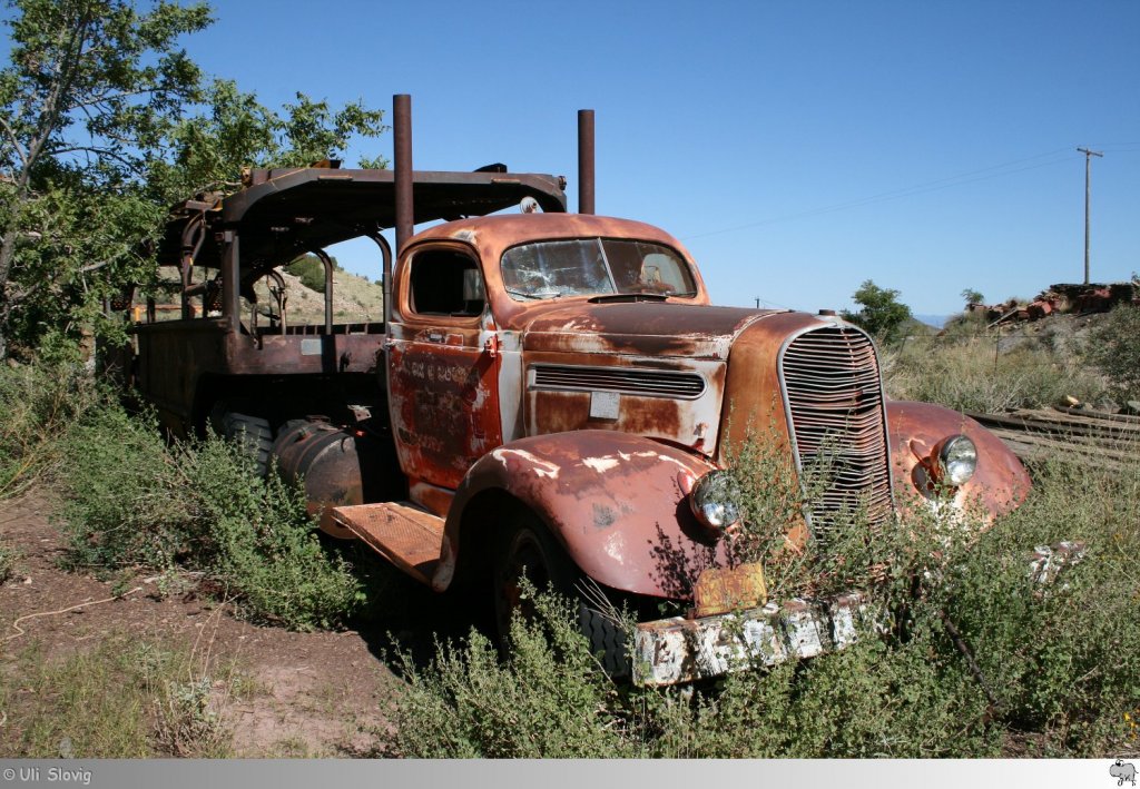 Old and Rusty: Alter Autotransporter zu finden bei der großen Fahrzeugsammlung der 'Gold King Mine' in Jerome, Arizona / USA. Aufgenommen am 23. September 2011.
