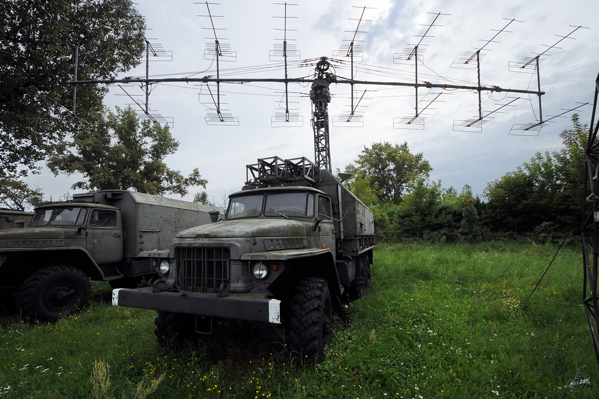 Ein Radargerät vom Typ P-18 Terek zur Aufklärung von Luftzielen und zur Zielzuweisung in der Zweigstelle Fort IX "Sadyba" des Armeemuseums Warschau auf einem LKW Ural 375D. (August 2011)