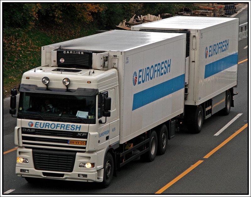 DAF XF95 von Eurofresh bei Lüdenscheid. (19.10.2008)