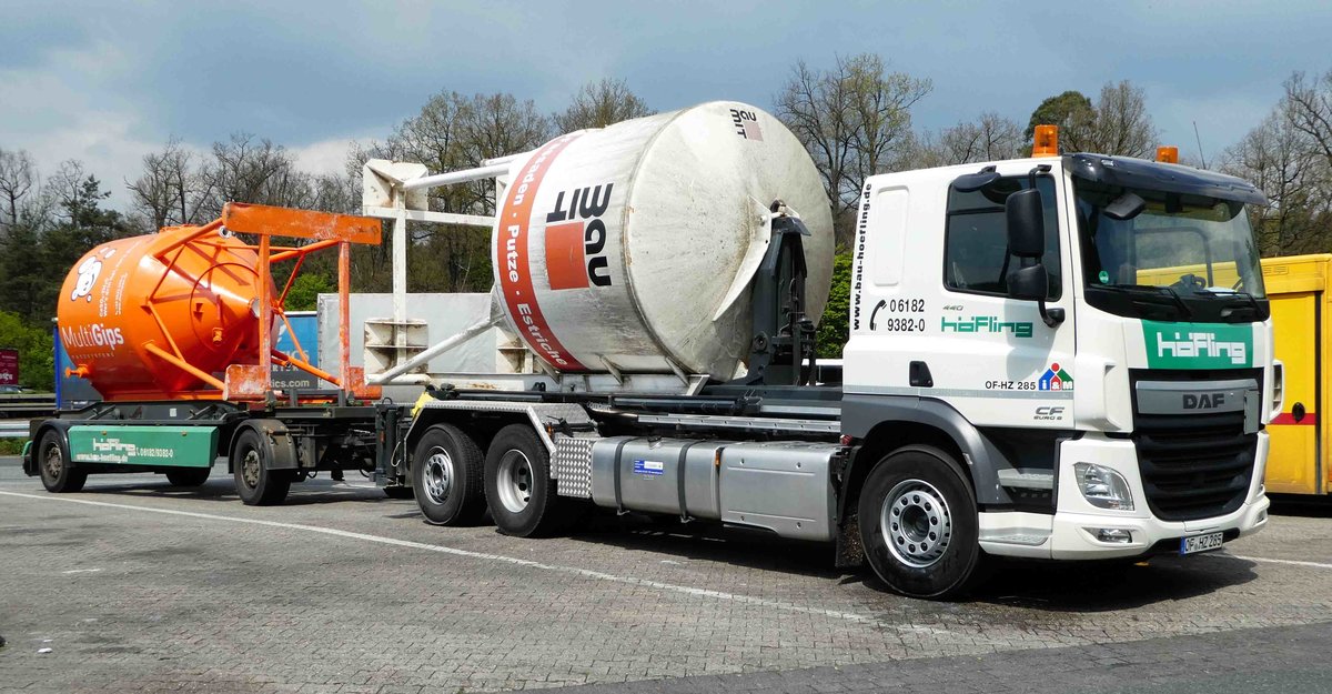 =DAF CF transportiert Baustoffsilos und rastet im April 2017 an der A 3