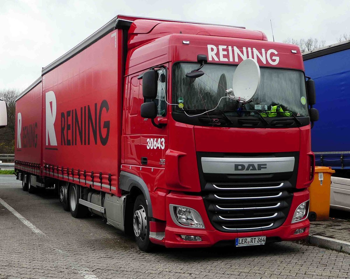 =DAF XF-Hängerzug der Spedition "REINING" rastet im November 2017 an der A3