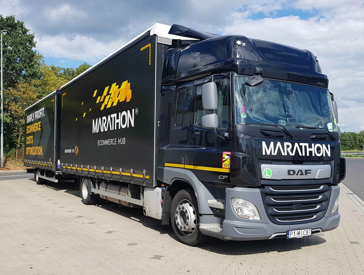=DAF CF Hängerzug der Spedition MARATHON rastet im Juli 2023 an der A 7