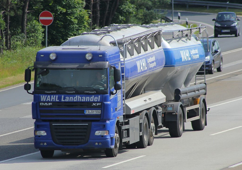 DAF-Sattelzug aufgenommen am 02.07.2013 auf der A5 beim Flughafen Frankfurt.