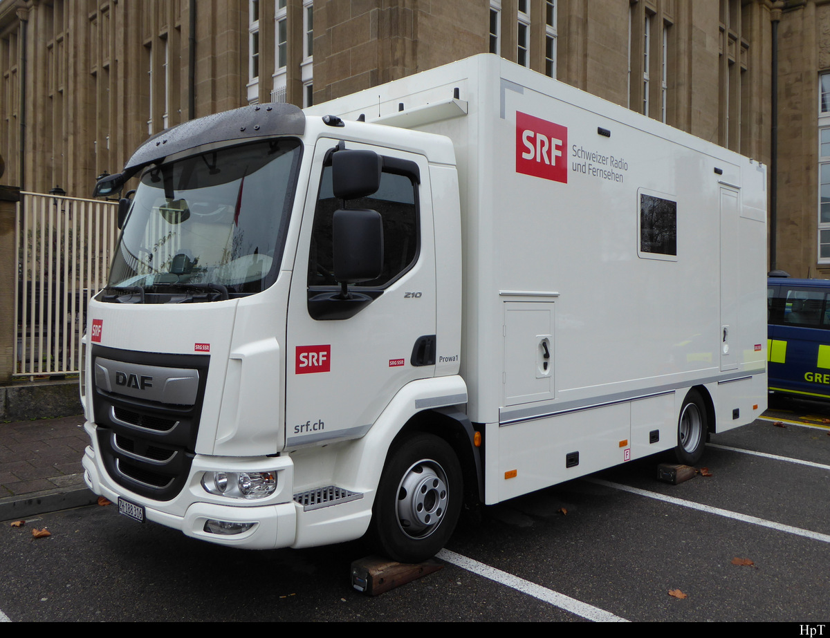 DAF Mit Kastenaufbau vor dem Bahnhof in Aarberg am 08.11.2025