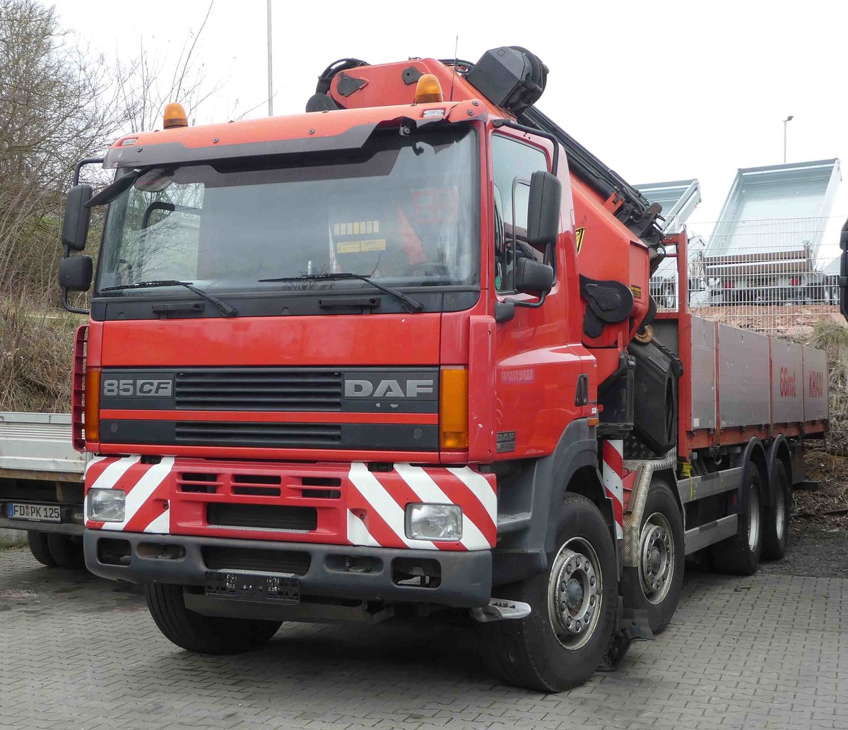 =DAF 85 CF mit Ladekran steht im März 2019 in Fulda