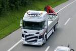 Ein DAF von SDL AG der am 28.6.24 unterwegs zum Trucker Festival ist auf der A8 in Matten b. Interlaken.
