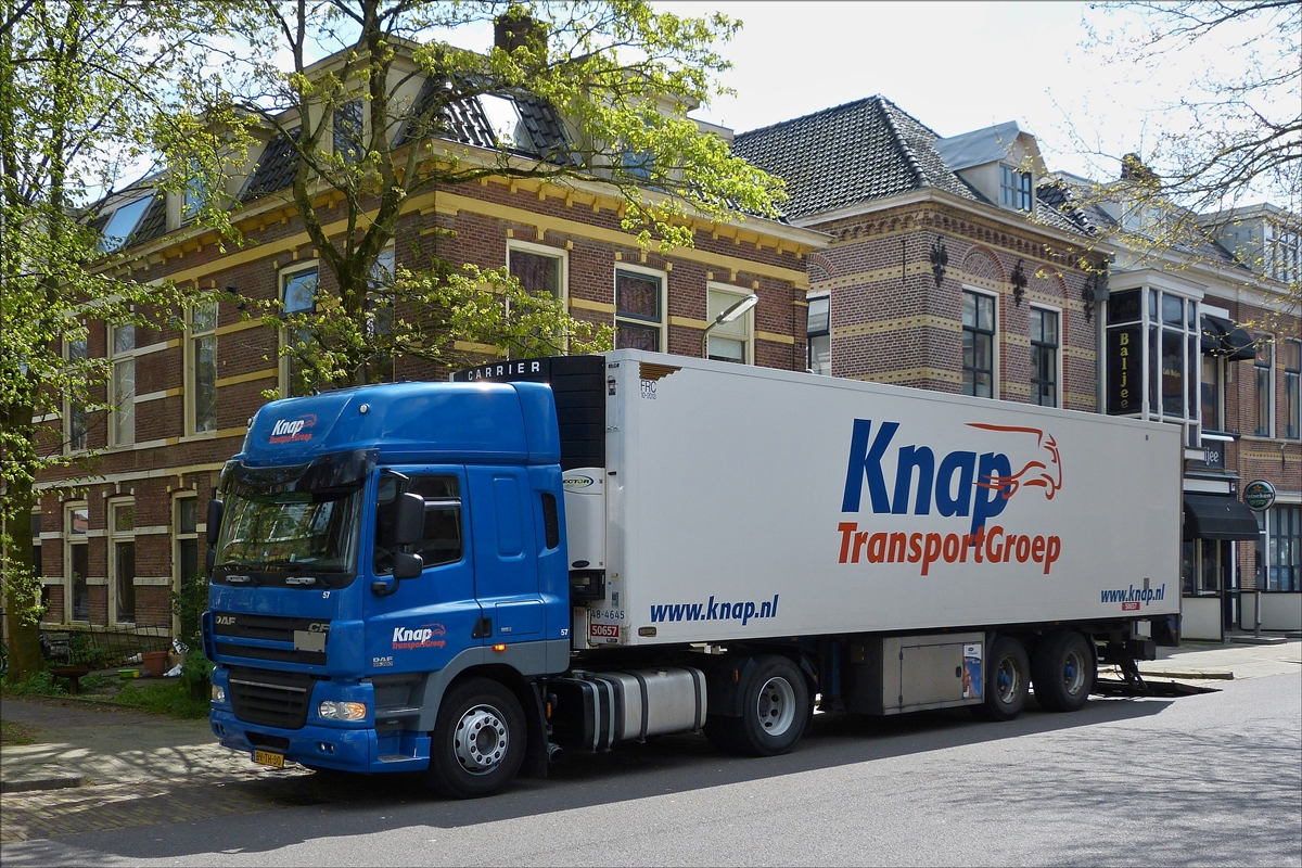 . DAF CF Sattelzug, aus dem Kühlauflieger werden Waren entladen. 05.05.2016