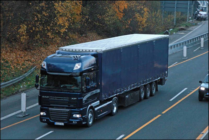 DAF XF105.460 mit SuperSpaceCab" vom Vermieter BTS aus dem Raum Gummersbach ist vermutlich auf dem Heimweg. (07.11.2008)