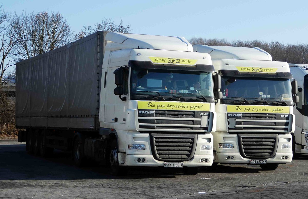 =2 DAF XF aus Bulgarien rasten im Februar 2017 auf dem Autohof Fulda-Nord