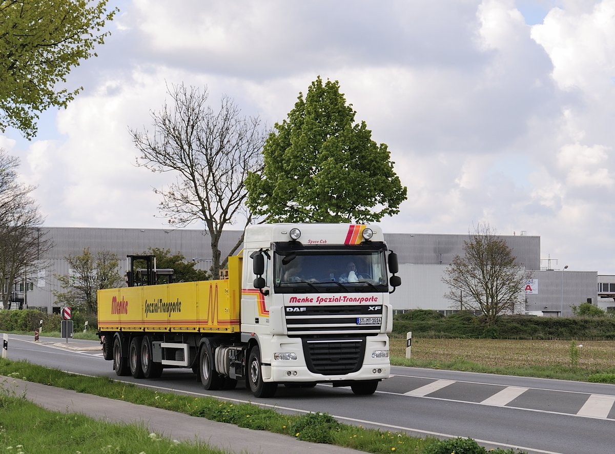 DAF XF mit Sattelauflieger, mitgezogen am 27.4.2017 auf der L 164 (ex B221) bei Übach - Palenberg