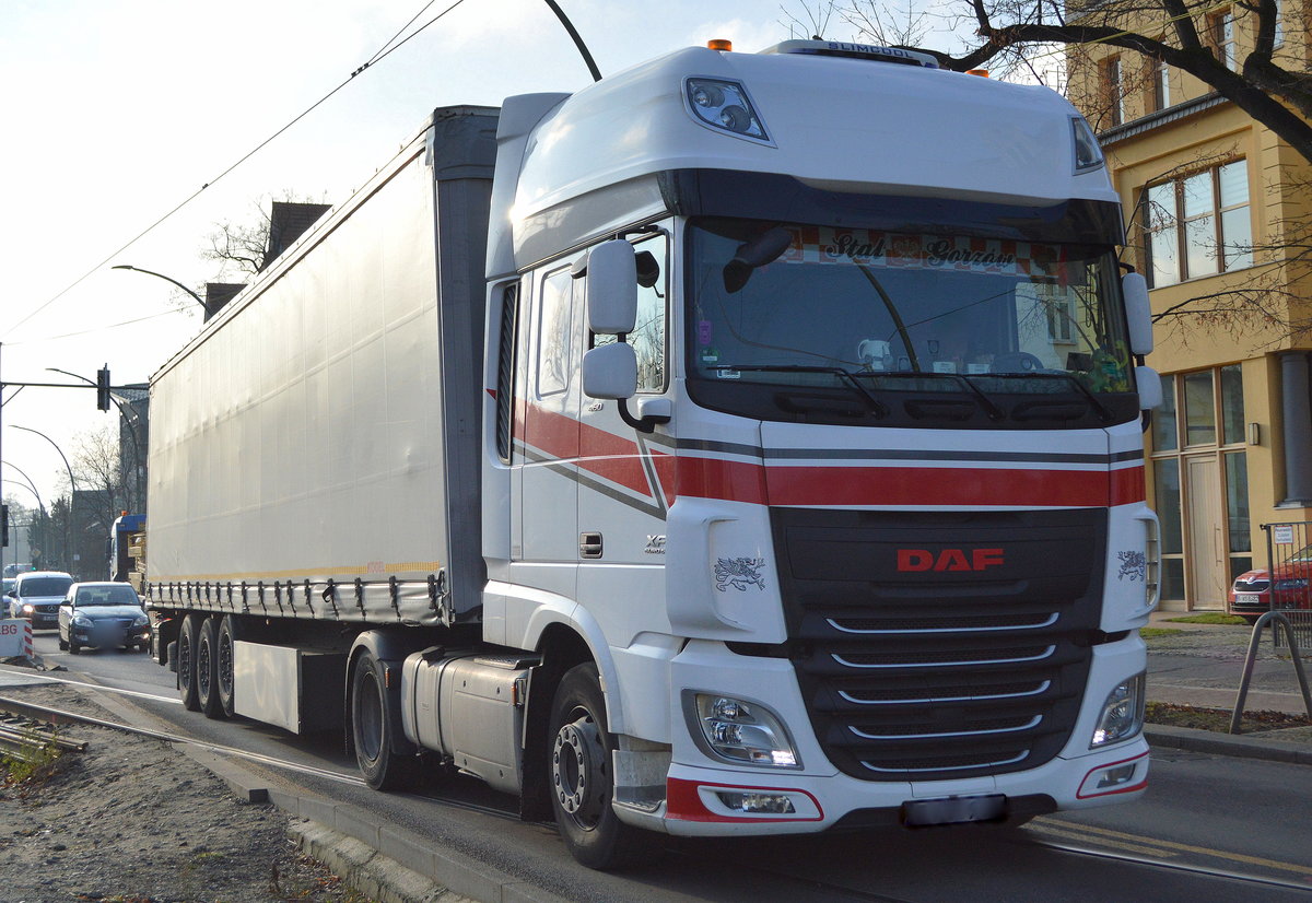 DAF XF 460 EURO6 Zugmaschine mit Auflieger am 13.12.19 Berlin Karlshorst.