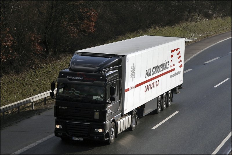 DAF XF105.460 "SpaceCab" der PAUL SCHOCKEMÖHLE Logistics bringt Kühlware in Richtung Ruhrgebiet.