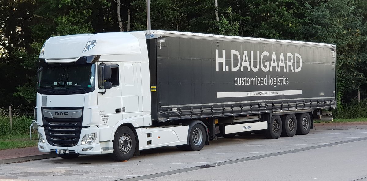 =DAF XF mit einem Sattelauflieger der dänischen Spedition DAUGAARD, 07-2020