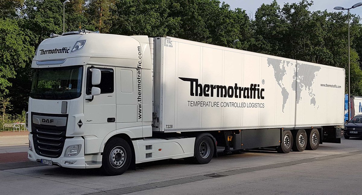 =DAF XF von THERMOTRAFFIC steht auf einem Rastplatz an der A 3 im August 2020